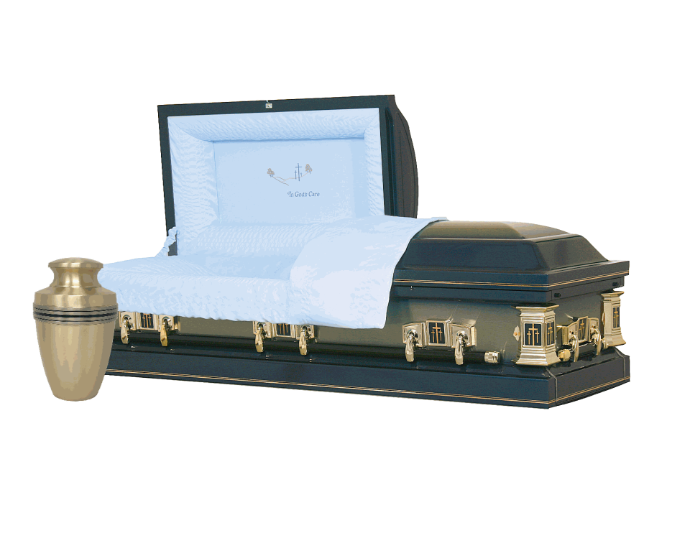 Gold Brushing, Dark Blue Rails with Pinstripe | Blue Chalet Crepe Insert